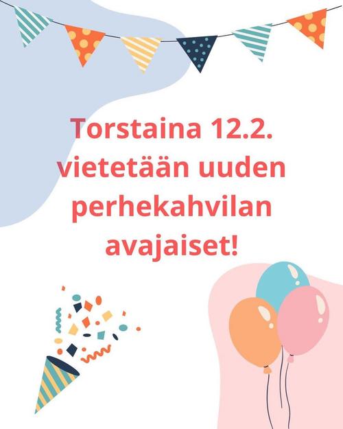 Vihdoin perhekahvilan uudet tilat ovat valmiit! 🎉 Avajaisia vietämme ensi torstaina 12.2. klo 9-10.30 Yhteistalo Päivärannassa. Lämpimästi tervetuloa! 💙