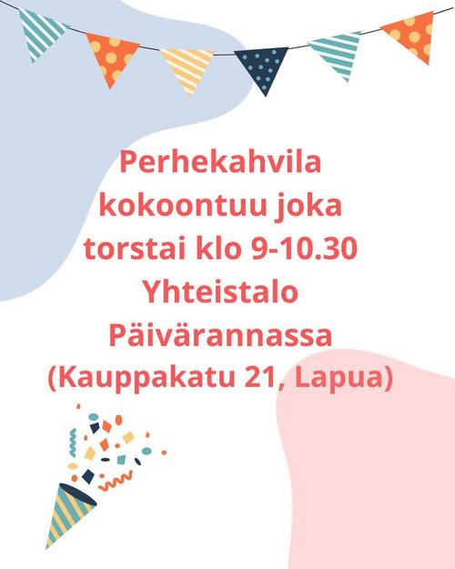 Vihdoin perhekahvilan uudet tilat ovat valmiit! đ Avajaisia vietĂ€mme ensi torstaina 12.2. klo 9-10.30 Yhteistalo PĂ€ivĂ€rannassa. LĂ€mpimĂ€sti tervetuloa! đ